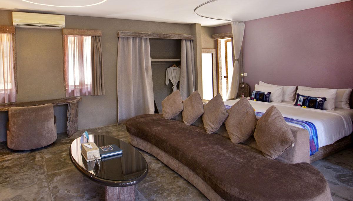 Located on ground floor, 56 M2, features king or twin bed, couches, TV, DVD plyer, minibar, safety box, tea/coffee making facilities