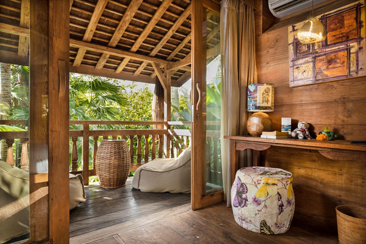 "Udara" 60 sqm located at ground floor, dressing room and private balcony. Features king or twin bed, minibar, safety box, tea/coffee making facilities